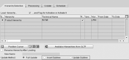 For large hierarchy updates, leverage the Insert Subtree (BW 2.0B and above) or Update Subtree (BW 3.x) functionalities to load only the nodes that have changed since the last update. You can find Insert Subtree and Update Subtree for an InfoPackage using transaction RSA1 (Figure 4). This strategy avoids having to load the full hierarchy, improving data load and maintenance. Insert Subtree lets you add a new subtree to an existing tree without having to reload the entire hierarchy. Likewise, Update Subtree allows you to insert only the part of the tree that has changed.