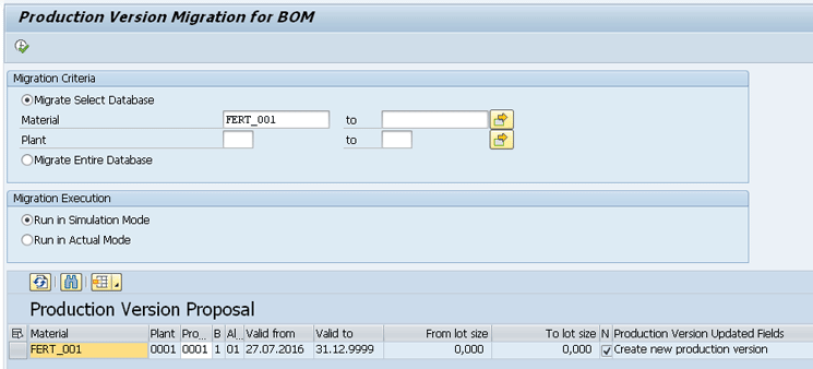 Since the creation of production versions is now mandatory in SAP S/4HANA and there was no mass processing tool for the creation of production versions in SAP ERP, a new report called CS_BOM_PRODVER_MIGRATION is available in SAP S/4HANA. This report can be executed using transaction code SE38. It proposes the creation of a production version for each valid material BOM, as shown in Figure 10.