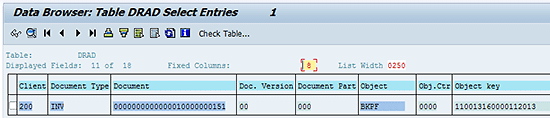 Table PT_DRAD_X is used to pass a document object. You take the FI document number using the import parameter BAdI IS_LPOR to pass the OBJKY field and value BKPF into field DOKOB. This attaches the DIR with object BKPF and a record is inserted in database table DRAD (Figure 11).