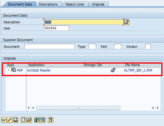 After uploading the document, the object is added to the Object Links tab (Figure 36). This was accomplished via the screen BAdI implementation done above.