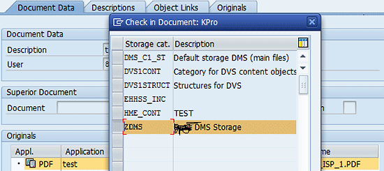 The storage category settings have a content repository. Choose storage category ZDMS (Figure 35). Storage category ZDMS is for document area DMS. It is a Basis team task to configure the storage category.