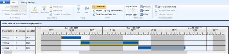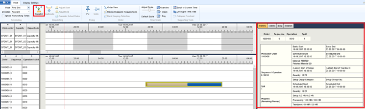 The basic usability is similar to the capacity-leveling transactions (for example, transaction code CM25) in the SAP ERP system. You can select the orders and drag and drop them to allocate them on the work center or click the Dispatch button (