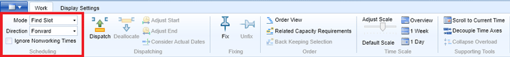 When you are dispatching an order, it is also important to observe that the settings defined for scheduling are then considered. You can define the direction forward or backward to allocate the orders, you can ignore nonworking times by selecting the check box shown in