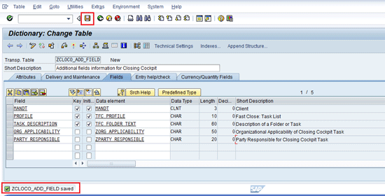 Click the save icon to save the changes (Figure 9). Your table maintenance is generated.