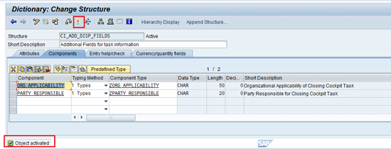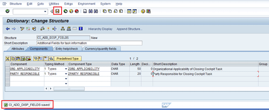 Confirm the creation of structure CI_ADD_DISP_FIELDS