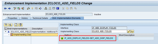 - Implement (manually or via automatic import from transaction code SNOTE) the source code that is contained in the correction instructions of this note. If errors occur during the activation, first activate the enhancement spot ENHS TFC_ADD_DISP_FIELDS, then the BAdI interface INTF IF_ADD_DISPLAY_FIELDS, and then all the other objects.