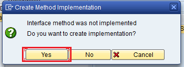 A pop-up screen appears asking you if you want to create an implementation for the interface method (Figure 21). Click the Yes button.