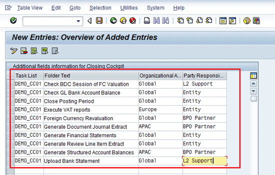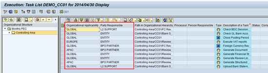 - Showing the responsible party information for the task. This scenario would be needed when multiple parties are involved in your period-end closing process such as end users, a support team, and outsourcing partners. In this scenario, the outsourcing partner executes the process, the support team handles any issues in process, and end users verify and sign off on the execution results. SAP gives an option to enter only the user ID of the processor or person responsible. However, for the support team or outsourcing partner, the exact user might be changed rotationally and thus there should be some feature to mention the party responsible for the task instead of a particular user. Using this scenario you can identify which step is under which party’s responsibility. If a period-end close step is under a different responsibility, then the step is broken down to minute-level tasks so that each task can be assigned to the corresponding responsible party.