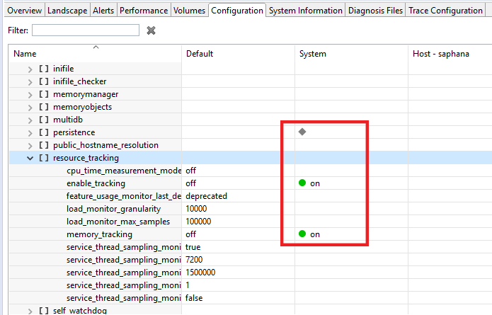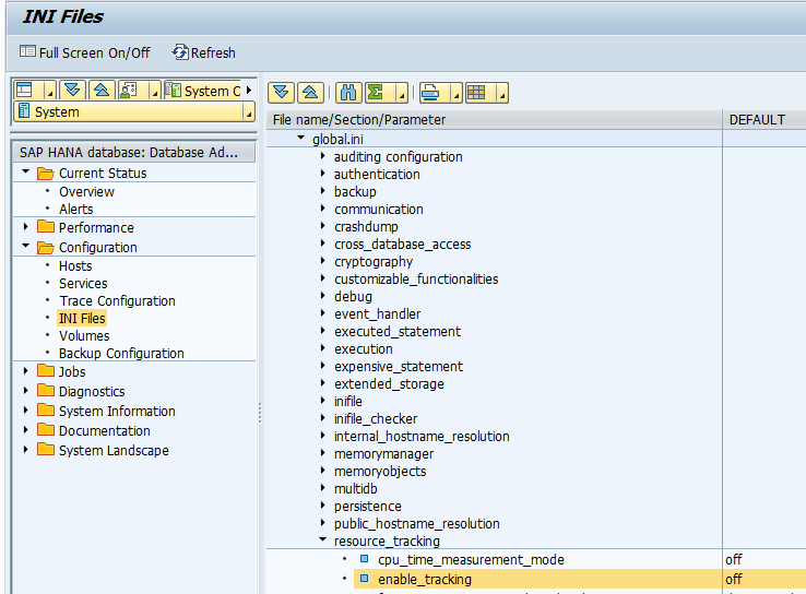 - global.ini > [resource_tracking] > enable_tracking = on