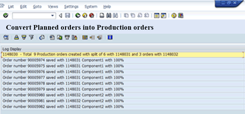 Now, click the Convert orders’ button shown in Figure 8. The program should use BAPI_PRODORD_CREATE_FROM_PLORD to convert the planned orders into production orders. For the production orders being created, apply the component allocation rule discussed earlier. The status messages on the production orders created appear in Figure 9.