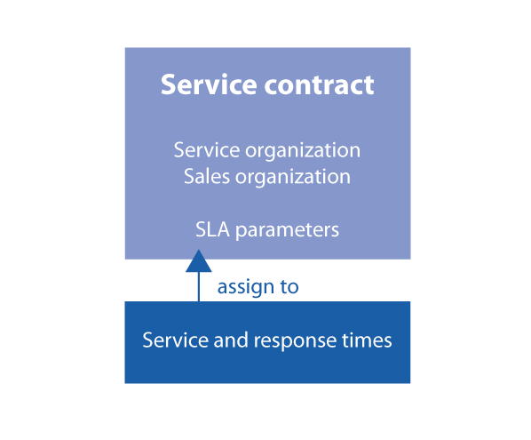SAP Solution Manager uses the SAP CRM approach to manage SLA. This approach uses a service contract to determine the parameters of the agreement. A contract delivers a product that, in SLA context, is the support service. The SLA performance indicators are among the parameters of this product. In SAP CRM, products are organized in product hierarchies.
