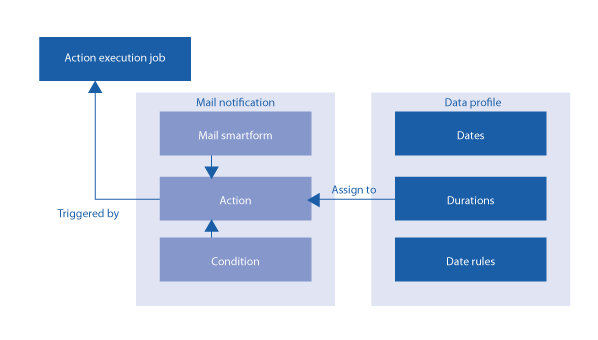 Figure 7 shows the relationship among the configurations involved in email notifications.