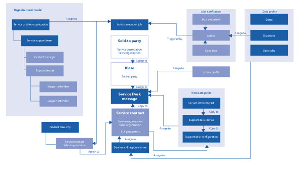 Figure 4 shows which components are assigned to a Service Desk message in an SLA scenario.