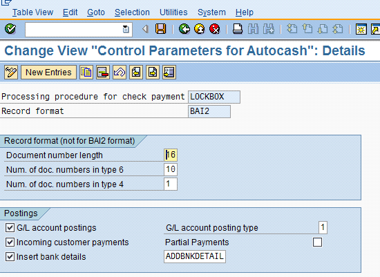 The SAP system already consists of configuration of control parameters for both formats. You just need to verify that the system has default configuration for the BAI2 file format. To do this, follow IMG menu path Financial Accounting (New) > Bank Accounting > Business Transactions > Lockbox > Define Control Parameters (Figure 12). Select the line for LOCKBOX procedure for BAI2 format and double-click to navigate to the screen detailing control parameters for BAI2 format of lockbox (Figure 13).