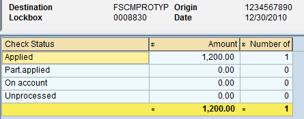 After processing the lockbox file, the system has applied the payment of US$1,200 against invoice number 1800000062. Figure 17 displays the total payment amount for the lockbox file, which is US$1,200.