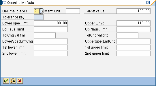 Click the continue icon. This leads to the screen in Figure 14, in which quantitative data is defined, such as the number of decimal places, the value of upper and lower limits, and the target value.