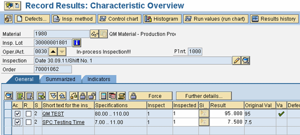 - The check box Skips allowed lets you to skip results recording if it is deemed that the produced goods are of acceptable quality and a direct usage decision can be made.