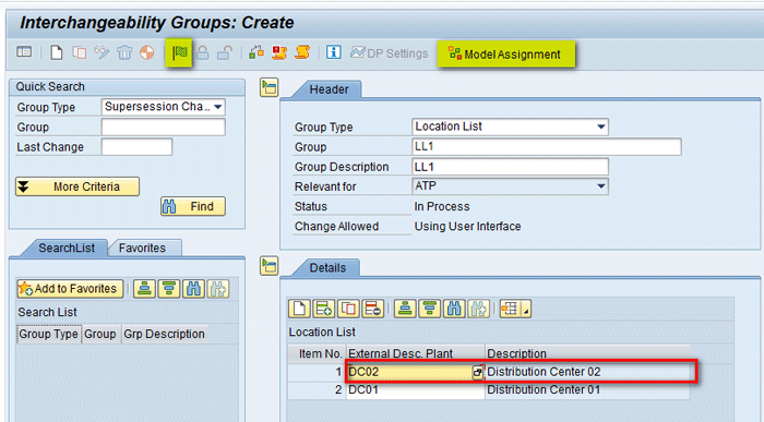In the row that is created, enter the name External Desc. Plant (e.g., DC02) and press Enter. The description is autopopulated. After you enter the details, click the release flag icon and then click the Model Assignment button (Figure 10).
