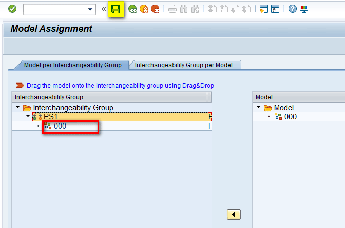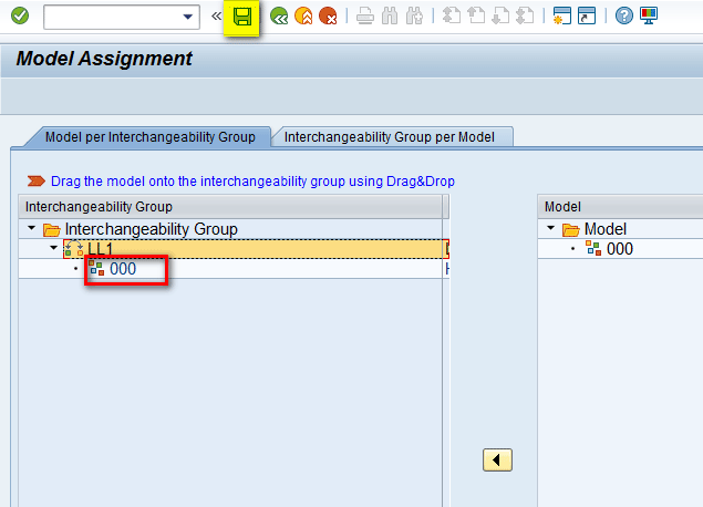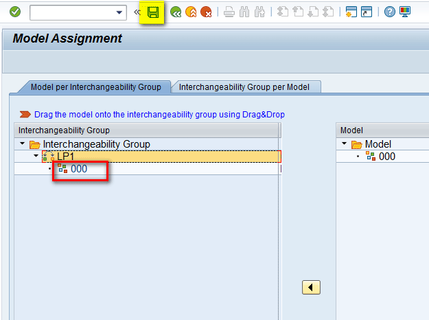 In Figure 12, you can see that Model 000 is now assigned and present under Interchangeability Group LL1. Click the save icon to save the changes.