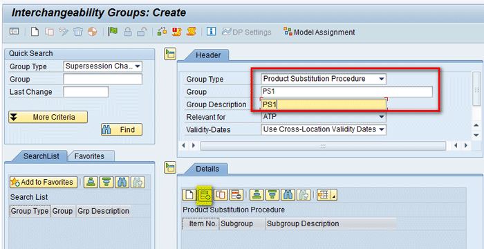 In the same screen, select Product Substitution Procedure from the drop-down list of options in the Group Type field. Enter a name in the Group and Group Description fields (e.g., PS1) and then click the add icon highlighted in Figure 20.