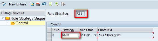 This action displays the screen shown in Figure 36. Select the Control folder and in the Rule Strat. Seq. (rule strategy sequence) field, enter RSS. In the field in the Strategy column, enter RS01 (the name of the rule strategy created in step 6) to assign this rule strategy to the RSS rule strategy sequence and then click the save icon (not shown) to save your data.