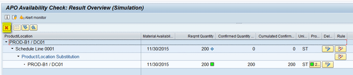 In this section you saw that while running ATP simulation both product and location substitution is allowed. PROD-B1 was initially searched at DC01 and if not fulfilled, the system searched for PROD-B1 at DC02. Then the system searched for PROD-B2 at DC01 and then DC02 as shown in Figure 61.