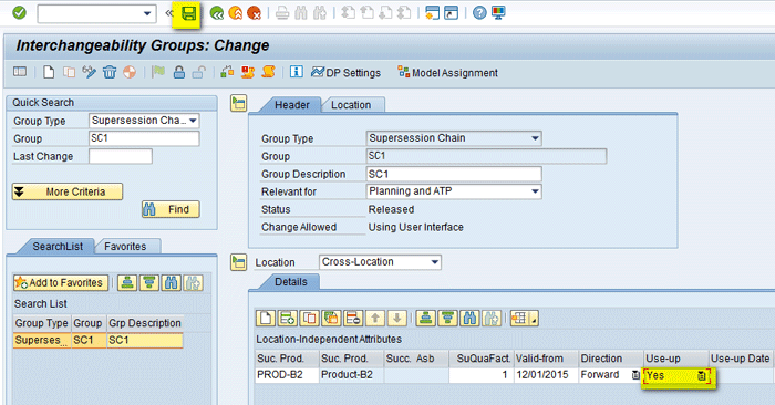 In the supersession chain defined in Figure 17, Use-up is changed to Yes and saved as shown in Figure 49.