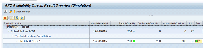 In this section you saw while running ATP simulation that only product substitution happened (i.e., PROD-B1 was initially searched at DC01 and if not fulfilled it searched for PROD-B2 at DC01). There was no location substitution because using product interchangeability master data directly does not support location substitution.