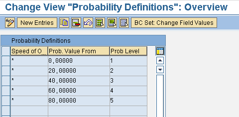 Follow IMG menu path GRC Risk Management > Risk and Opportunity Analysis > Define Probability Level. You can maintain the probability levels you want to use in risk analysis. Typically, you use five levels: Rare, Unlikely, Possible, Likely, and Certain. Then follow IMG menu path GRC Risk Management > Risk and Opportunity Analysis > Define Probability Level Matrix. Here you define how the system converts estimates for the speed of onset and probability percentage into a probability level. You can enter an asterisk as the speed of onset if you don’t want probability levels to depend on it (Figure 2). You may include the speed of onset in your probability level matrix if you want to prioritize risks that are likely to occur sooner over longer-term risks.