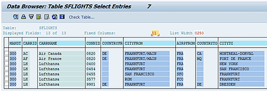The function module retrieves all the flights with the parameter CARRID LH and returns them in a table (Figure 9).