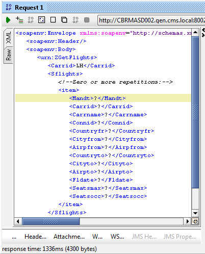 In the screen to the right, put LH between <Carrid> and </Carrid> near the top and delete all the question marks between the tags under <Sflights> (Figure 34).