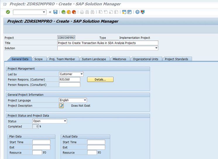 Using a Solution Manager implementation project to create transaction rules requires that you actually have an implementation project.