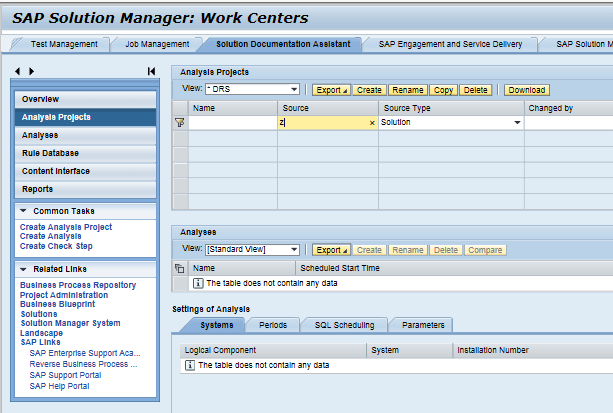 in the menu bar if you don’t have autosave turned on. Go to the SDA work center to create an analysis project using the selected transactions. Execute transaction code SM_WORKCENTER to open the SAP Solution Manager: Work Centers home screen.