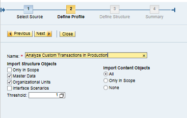 Click the Next button. In the Define Structure view in Figure 12, you can choose to include or exclude parts of the Solution Manager project from the analysis project you are creating.