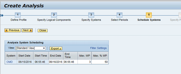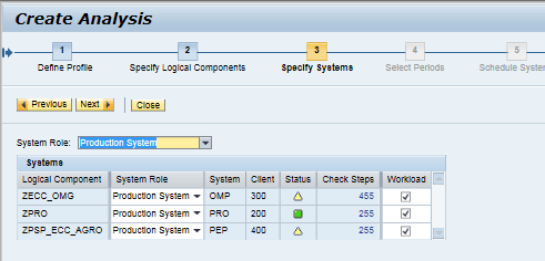 Click the Next button. In the Specify Systems (Figure 17) screen you can choose which system in the landscape is to be analyzed in this analysis. I chose Production System for my example. Click the Next button to proceed with the guided procedure.