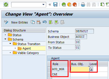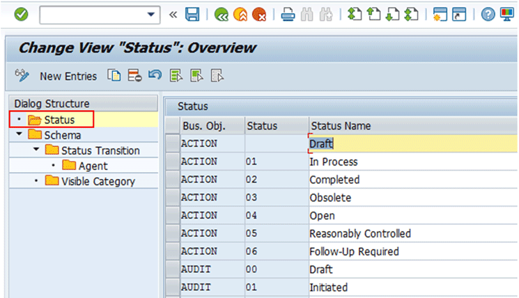 The Req. Adtbl column check box allows you to determine whether it is mandatory to assign auditable items during creation of an audit or not. To review or maintain the status schema for different business objects for a specific audit type, highlight the audit type and double-click the status schema folder. Figure 58 displays.