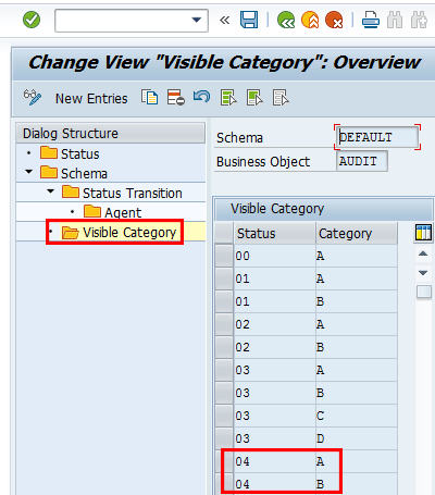 Visible category definition for audit business objects