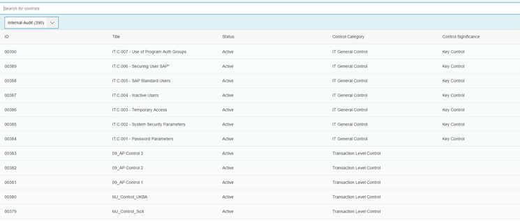 - Maintenance of views for risk and controls