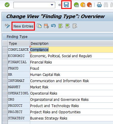 The Finding Type field is a mandatory field that needs to be maintained when a finding is created. This customizing activity allows you to classify a risk for findings based on the risk area impacted by the findings.