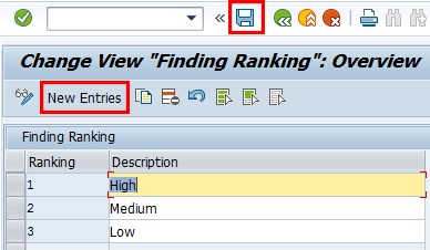 To add entries, click the New Entries button and provide an identifier for the finding ranking and corresponding description. Save your entry by clicking the save icon.