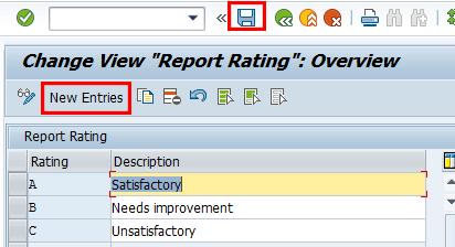 To add entries, click the New Entries button and provide an identifier for the report ranking and corresponding description. Save your entry by clicking the save icon.