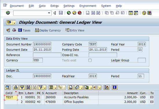 In the second scenario you post USD 2000 to Office Supplies with an invoice reference crediting to a vendor. You post the document in the leading ledger ZL (
