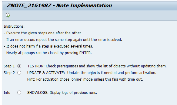 Execution of report ZNOTE_2161987