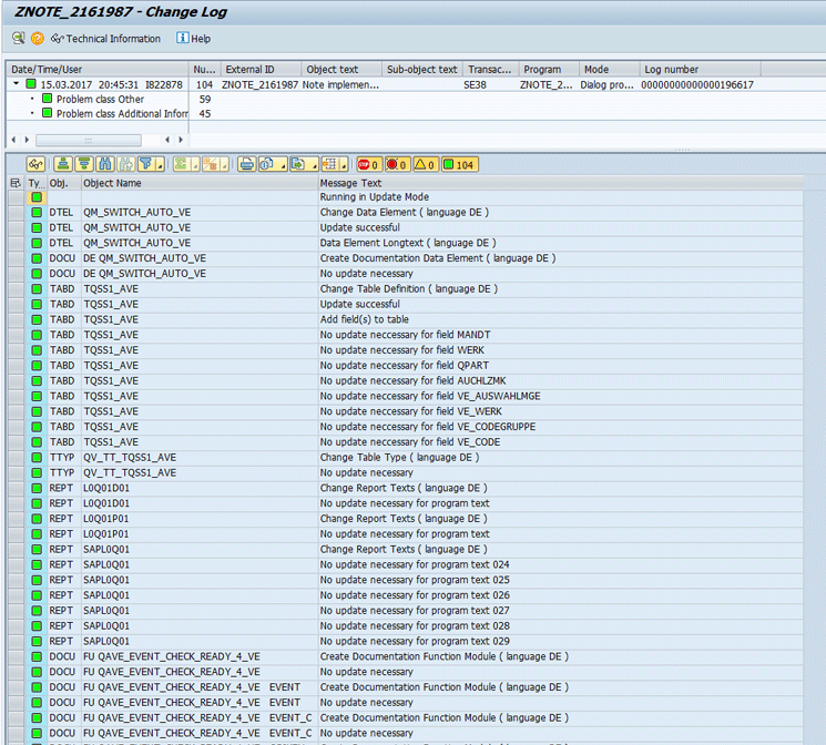 Successful execution of report ZNOTE_2161987