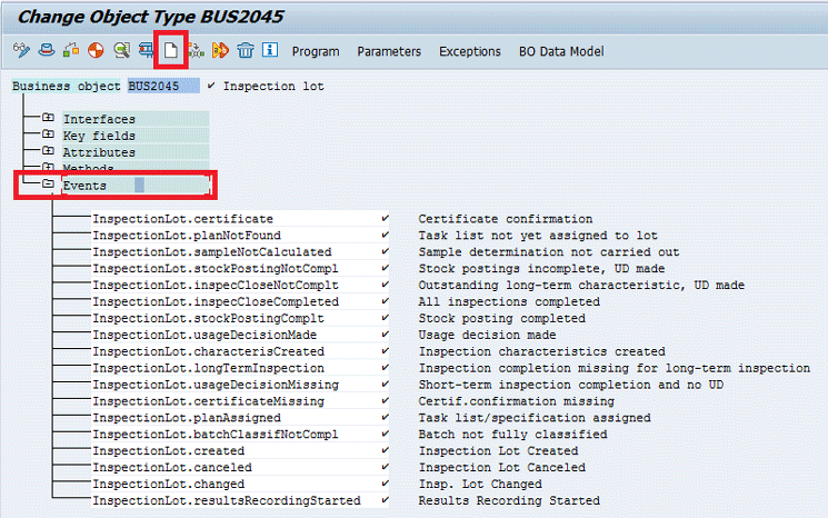 After you execute transaction code SWO1, select the Events section in the screen that opens and then click the create icon (Figure 4).