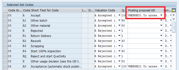 After adding the Inspection Type, selecting the UD Code, and making sure that the posting proposal is set for the UD code selected, you have completed the customizing settings. You can now test the automatic usage decision.