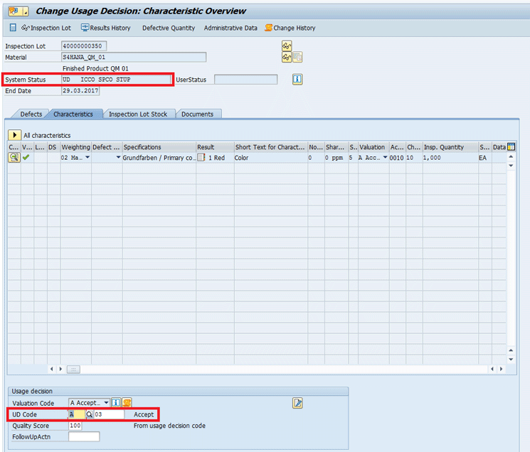 In addition, if at least one of the inspection characteristics is not accepted, the automatic usage decision does not take place.
