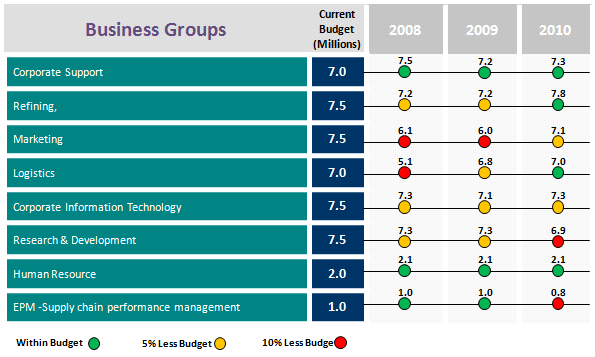 - Ensure that color schemes follow a conventional color pattern. For example, high sales figures are highlighted with green and poor sales figures are highlighted with red (Figure 1). Use a style sheet to keep track of color use.