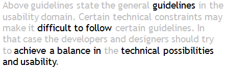 - Use bullet lists, brackets, border lines, background colors, sub headings, and font styles, sizes, and colors to clearly identify emphasized text. Figure 2 displays textual information in a paragraph, which allows the user to skim the emphasized words only to quickly grasp the message.