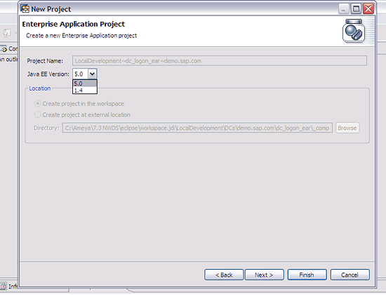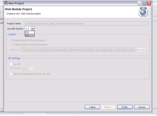 Now comes the most important part. Java EE Version by default is set to 5.0. However, the Logon Page framework in SAP NetWeaver 7.3 Portal is based on Java EE 1.4 and not on 5.0, so you should change it to 1.4 (